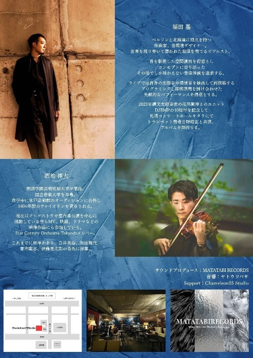 世界を渡り歩いて磨かれた旋律を奏でるピアニスト。音を駆使した空間演出を得意とし、コンセプトに寄り添ったその場でしか味わえない音楽体験を追求する。ライブでは自身の楽器音や環境音を抽出して再構築するプログラミングと即興演奏を掛け合わせた先鋭的なパフォーマンスを得意とする。2023年縄文太鼓奏者の茂呂剛伸とのユニットDJEMPの10周年を記念して札幌コンサートホールキタラにてトランペット奏者日野皓正と共演、アルバムを制作する。